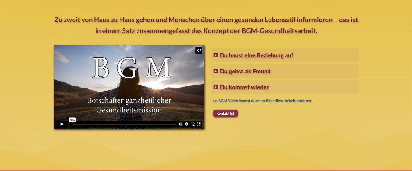 Dieser Abschnitt enthält eine Kurzbeschreibung des Dienstes und unser BGM-Video. Auf der rechten Seite befindet sich ein sogenanntes ‚Akkordeon‘. Klickt man auf den Text, dann öffnet sich nach unten hin ein kurzer, beschreibender Textblock.